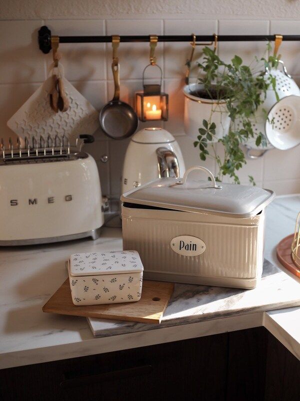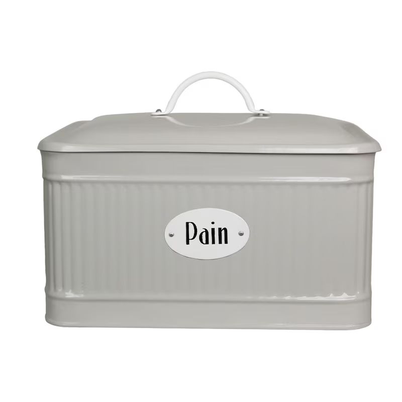 Conservez votre pain frais grâce à cette boîte à pain ! Boîte en métal de couleur beige avec couvercle. Inscription blanche « Pain ».