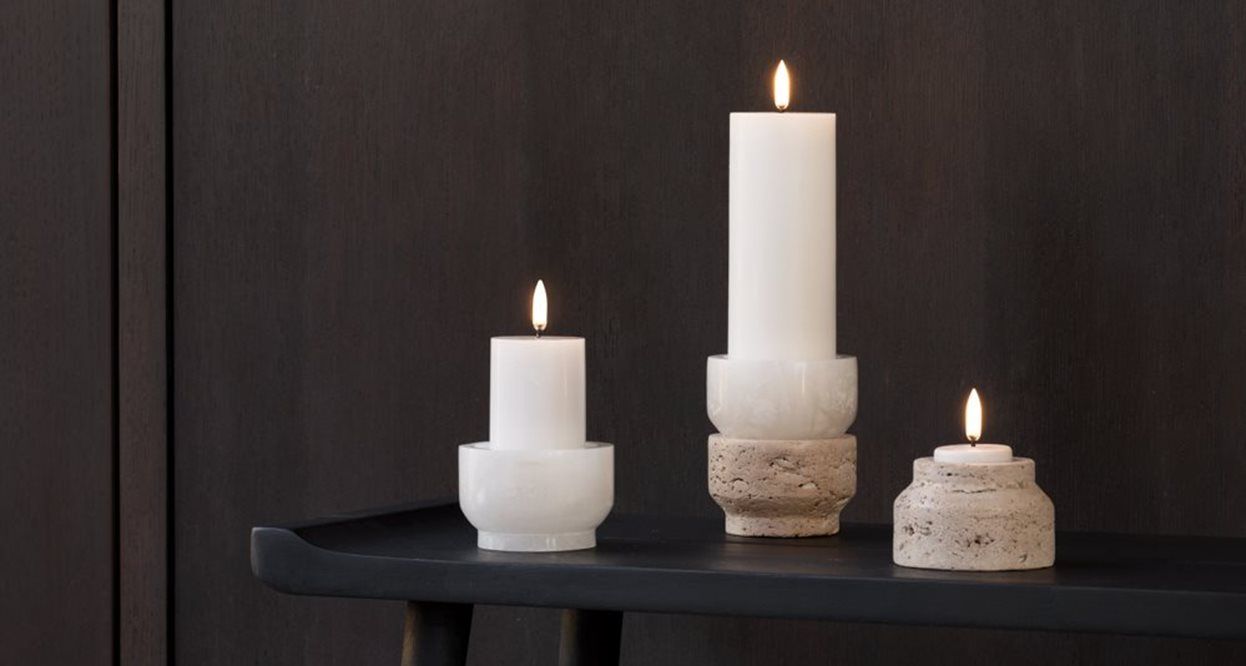 Apportez une touche naturelle et texturée à votre table avec le bougeoir en travertin. Fabriqué à la main en travertin, chaque bougeoir est unique et polyvalent, disponible pour les bougies chauffe-plat et les mini-piliers.