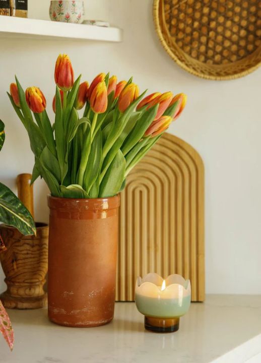 Terreuse et vivante, Garden & Grove évoque la richesse d’un potager florissant réchauffé par le soleil. La bougie est coulée dans un récipient en forme de tulipe de couleur jaune rouille, apportant une touche rustique inspirée du jardin à n’importe quelle pièce. Une fois la bougie consumée, le verre peut être réutilisé comme photophore, ajoutant une lueur chaleureuse à votre intérieur.