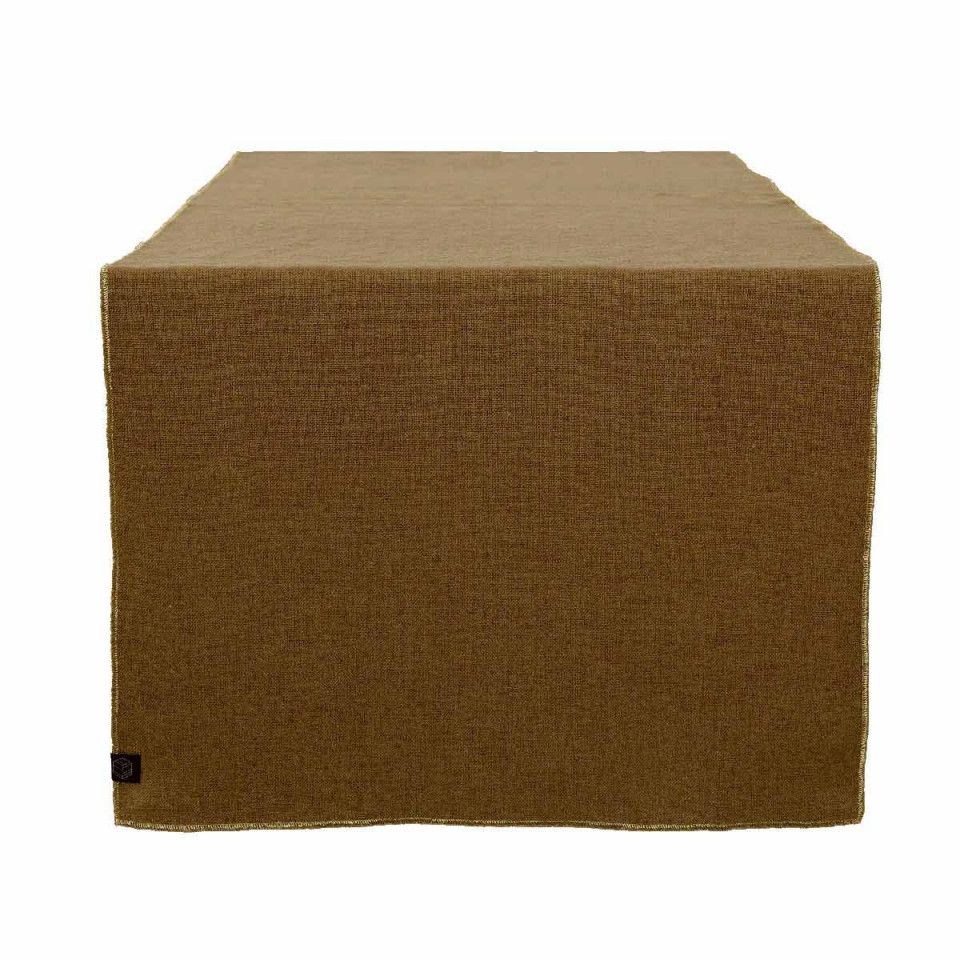 Chemin de table Vérone Haomy. Lin et coton. Finition liseré doré. Un accessoire raffiné pour une décoration de table à la fois chic et élégante.