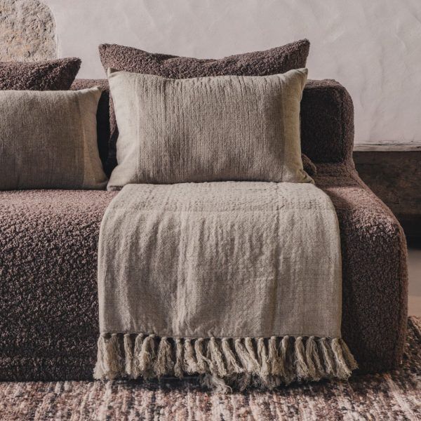 Le coussin PAOLINA joue sur la subtilité des nuances naturelles et l’authenticité de la matière. Son tissage en laine, dont la trame se devine à l’œil et au toucher, révèle un caractère brut et raffiné à la fois. Avec ses tonalités beiges et ses finitions frangées, il s’inscrit dans un style chaleureux et intemporel.
