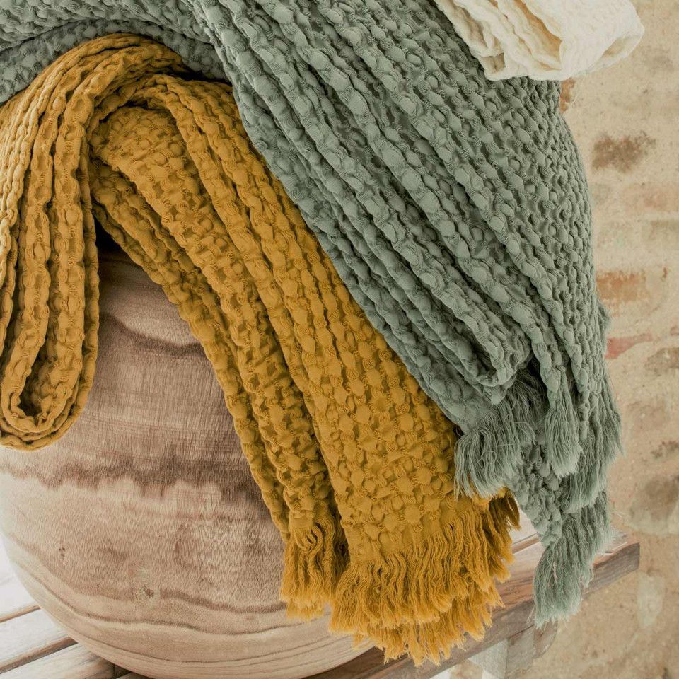 Couvre lit 100% coton avec finition nid d’abeille