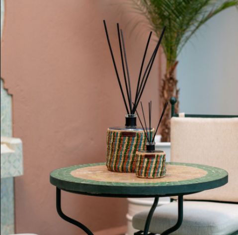 Diffuseur de parfums d’ambiance par capillarité pour une ambiance cocooning pure et légère.Parfums rechargeablesTiges végétales