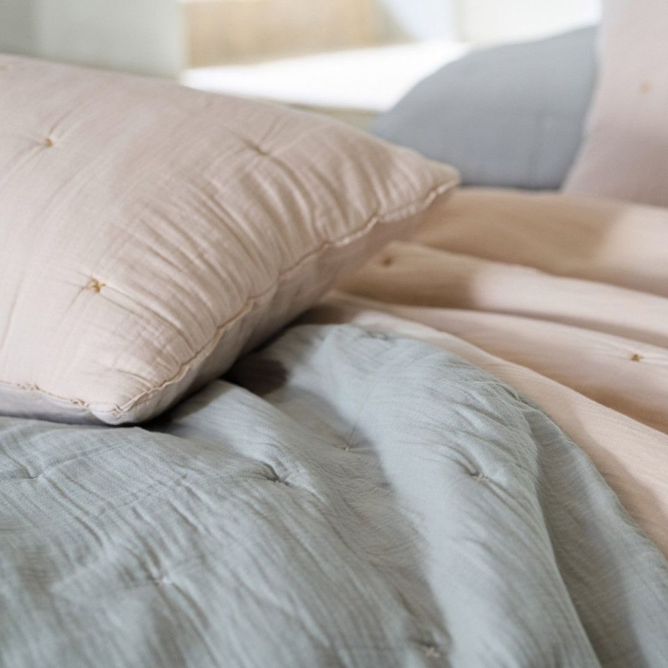 La mousseline de coton et le garnissage polyester offrent une douceur et une chaleur exceptionnelles.