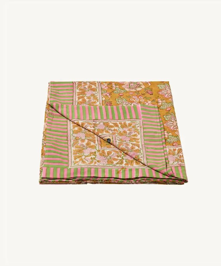 Ce charmant Marigold plaid est imprimé à la main avec des blocs de bois sculptés et s’adapte à différents usages. Déposez-le sur votre lit, sur votre canapé ou emmenez-le avec vous pour une journée à la plage ou lors d’un pique-nique. Le plaid est livré dans un sac Fourre-tout assorti.