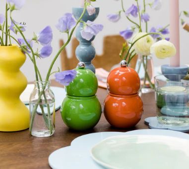 Le moulin Chubbie laqué orange convient pour le sel ou le poivre. Il présente la forme emblématique de notre bobine.