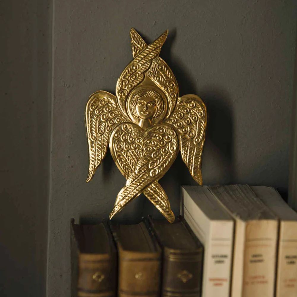 Accumulez coeur ex-votos, ornements et miroir pour une composition murale réussie.