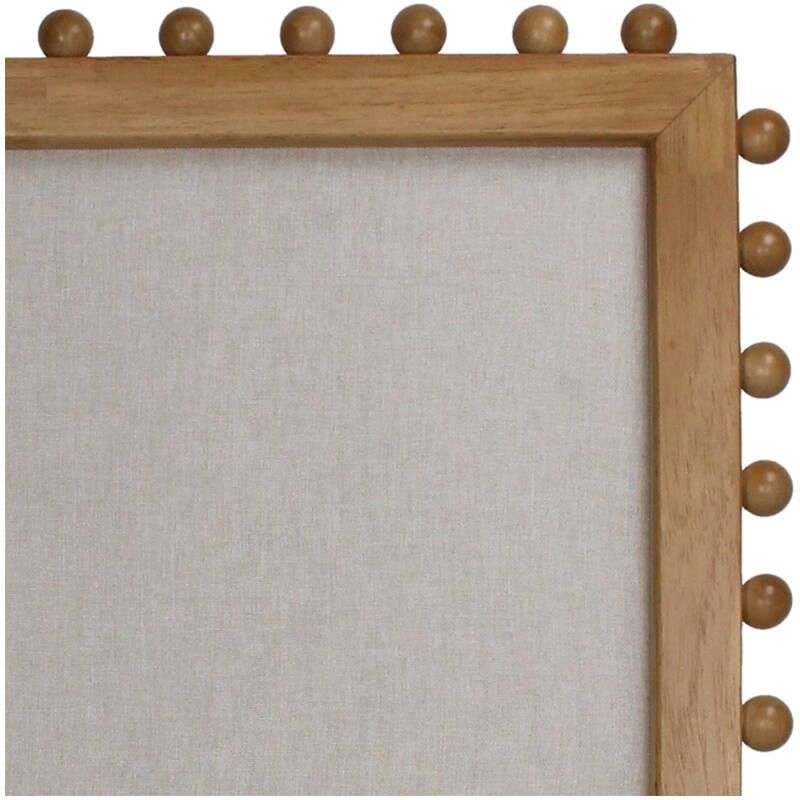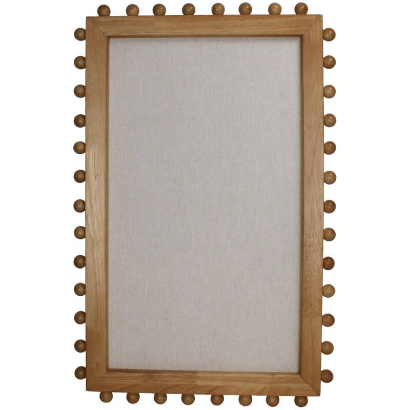 Tableau mémo en bois sur pied avec surface textile et détails en bois sphériques sur le pourtour. Un objet unique qui attirera tous les regards dans votre entrée ou votre cuisine.
