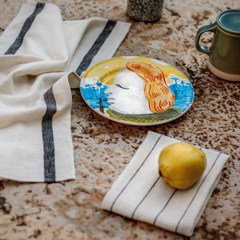 Torchon 100% lin, couleur naturelle avec lignes noires