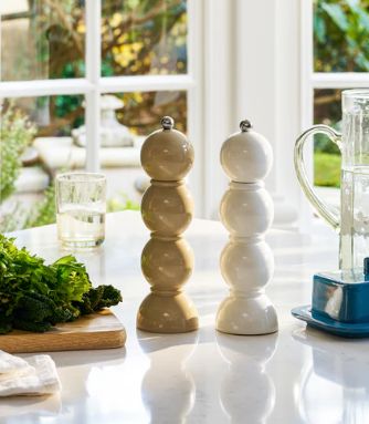 Le moulin est fabriqué en bois d’hévéa massif entièrement certifié FSC, avec 8 couches de laque brillante polies à la main entre chaque couche. Utilisant un mécanisme de broyage en céramique, le moulin nécessite un mouvement dans le sens des aiguilles d’une montre pour être activé. Le moulin peut être utilisé pour moudre du sel gemme (cristaux de sel sec) ou des grains de poivre noir. Ne pas utiliser pour le sel de mer, le sel humide, le sel humide séché ou les grains de poivre rose.